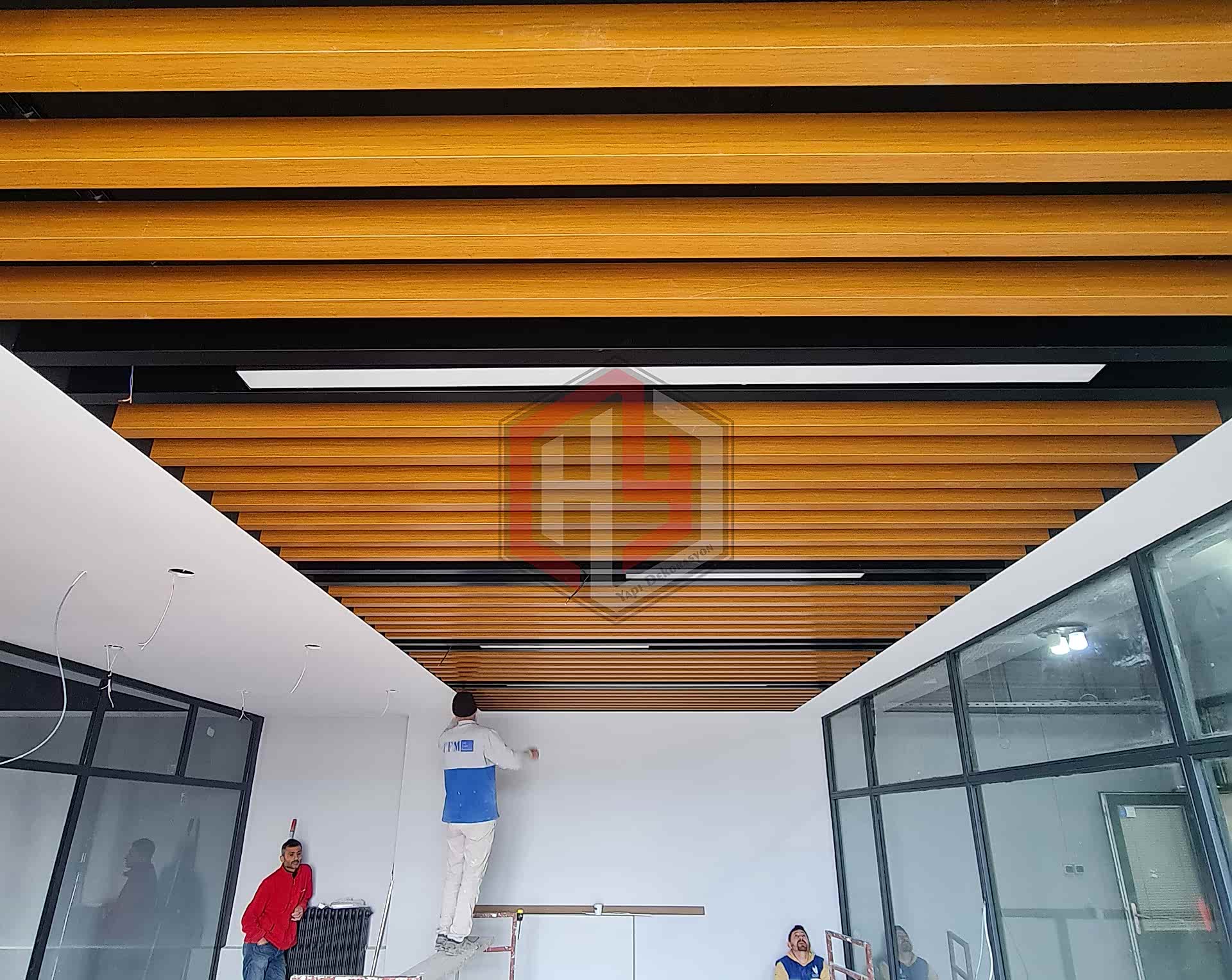 Alüminyum, MDF, akustik yutucu malzemeler veya metal seçenekleriyle baffle tavan panelleri, proje ihtiyacına göre özelleştirilebilir.
